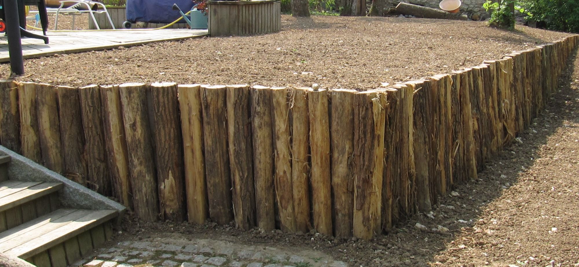 Aménagement d'une retenue de terre avec des piquets en Acacia