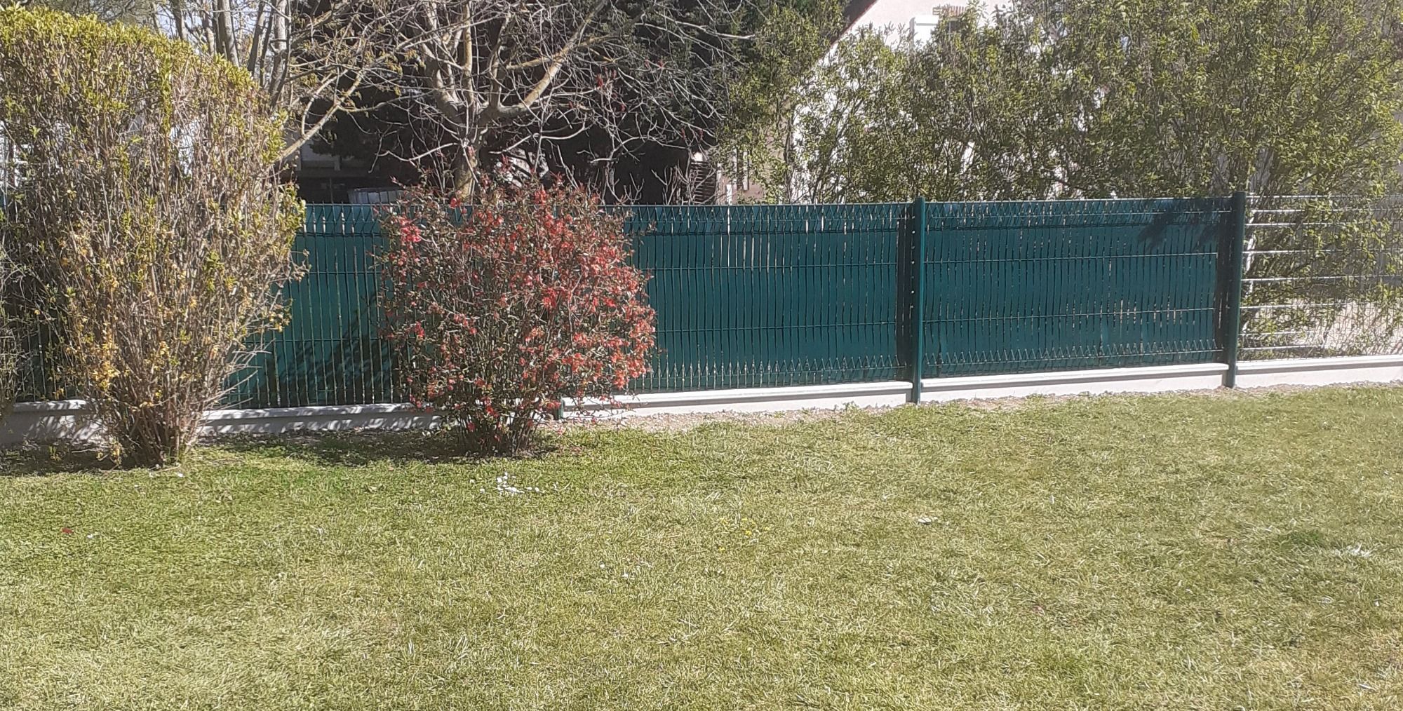 Pose de clôture avec un sous bassement en dalle ciment.- Brise-vue en PVC
